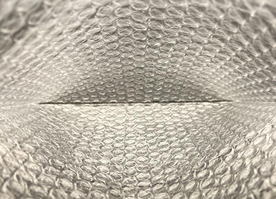 いわゆる気泡緩衝材(きほうかんしょうざい)というもので、ポリエチレンで出来た気泡状のものが沢山ついたシート。モノを大切に包むときによく使われますね。
